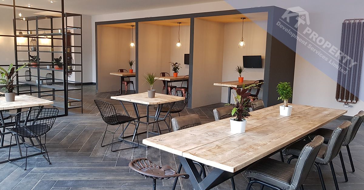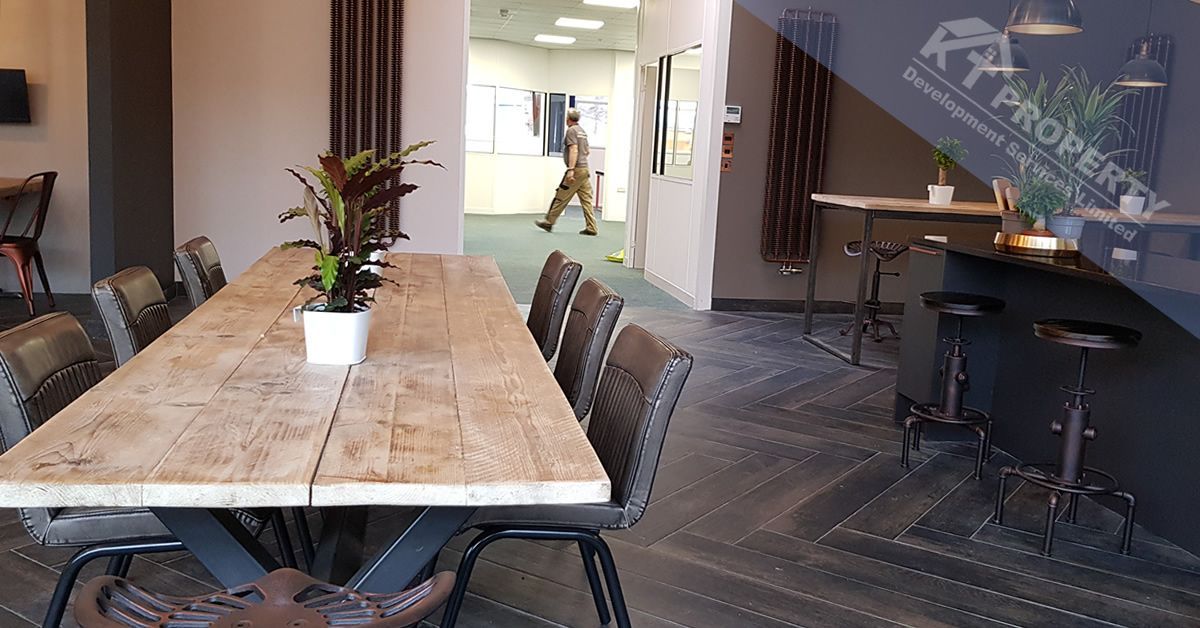 This was our second project for the same client at Bournemouth Airport, who had expanded their operations and taken on more staff to meet growing demand. With the expansion into a new hangar, Greenway Poole Ltd was called upon once again to transform the space into a cosy canteen and relaxation area for the additional employees.