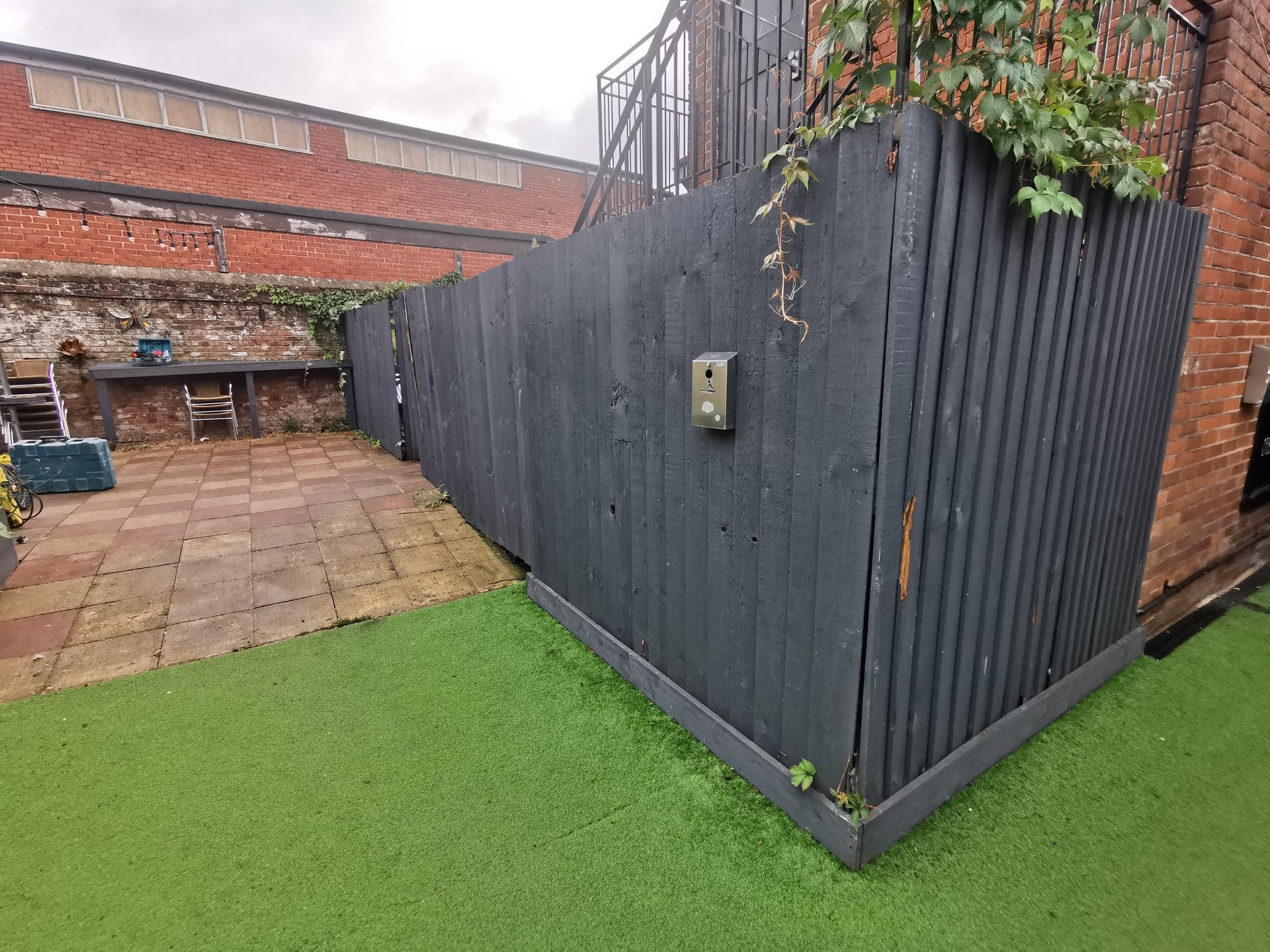 The unused area behind the old fence is now transformed with attractive wooden fence panels and privacy gate. All the unsightly rubbish is cleared away revealing ample space for the pub to utilise with a walk-in fridge, to cater for all the extra servings required!